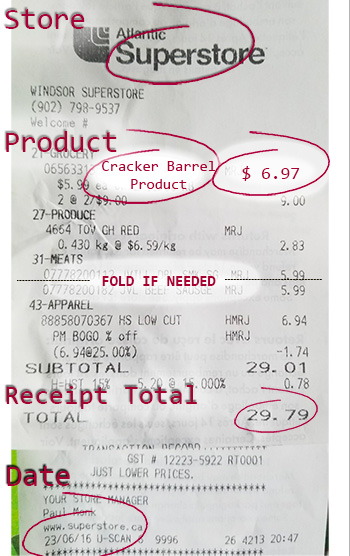 Place your receipt on a flat, plain surface. Get a clear shot of the store, required products as well as the purchase information.